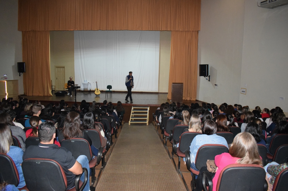 Uma atividade comum a todos que participaram da formação foi a palestra “Educação, Afeto e Espiritualidade”, com Jorge Trevisol. Mais de 400 pessoas estiveram presentes, sendo que foram convidados também a rede estadual de ensino e a APAE. Ele abordou a motivação profissional de modo mais amplo, trazendo a questão do afeto do professor com a criança. Os CMEI`s pararam o funcionamento por dois dias em função dos cursos e as escolas municipais retornam às aulas após as férias, no dia 30 de julho.