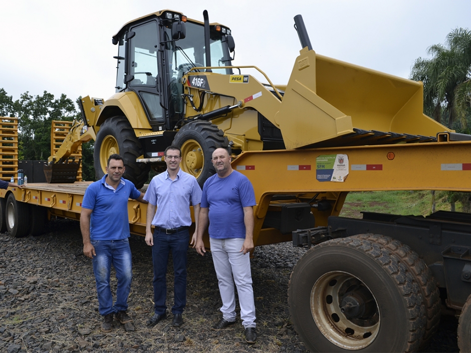 Na oportunidade foi entregue também uma retroescavadeira e uma Prancha para transportar as máquinas do setor público. O conjunto de equipamentos está avaliado em aproximadamente R$ 900 mil.