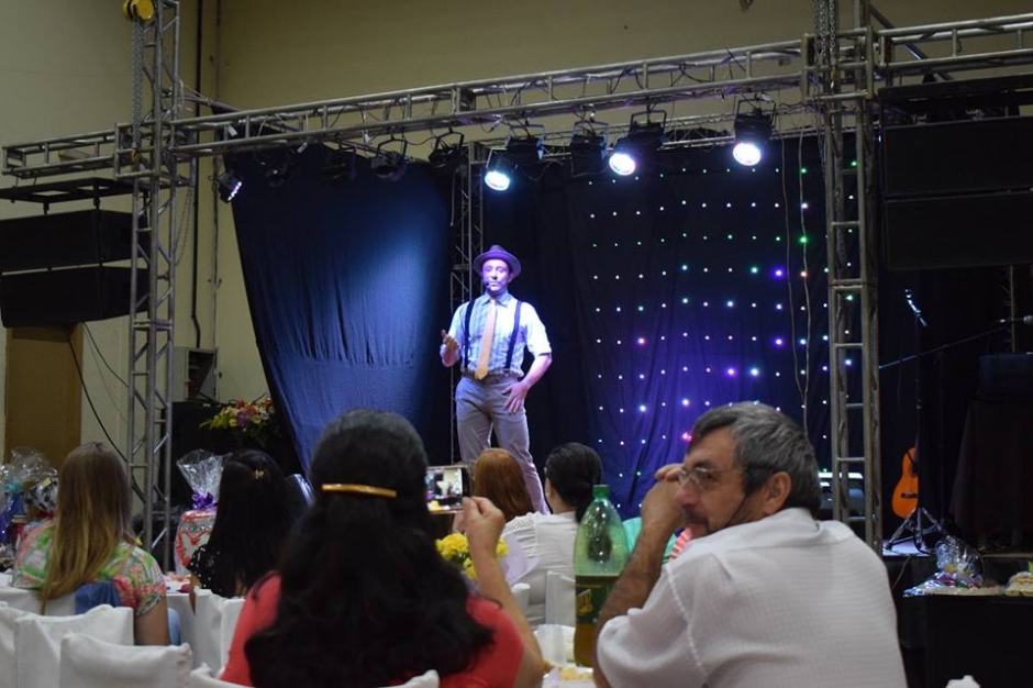 Um dos pontos altos da noite de festa foi a apresentação do Stand-up do Juca Bala. “Eu conto histórias engraçadas, coisas que aconteceram na minha vida – mas que acontecem na vida de todo mundo. Viajamos por todo o Brasil levando alegria” conta o intérprete do personagem Juca Bala. Na sua apresentação ele usou anedotas, paródia, dança e músicas autorais. Ele trabalha com o show há oito anos e explica que as histórias contadas variam conforme o público, que pode ser desde criança até idosos.