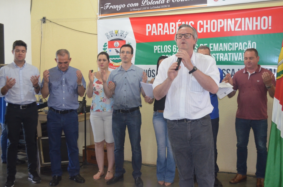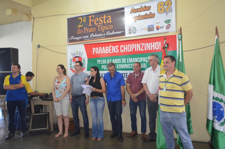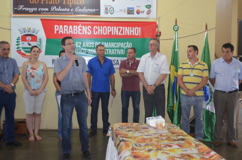 “Podemos destacar nestes 62 anos de história, conquistas e trabalhos de toda a comunidade, que contribuíram para o desenvolvimento do nosso município. Este é um momento de confraternização, e que lembra que o frango é o principal produto primário na economia local, com mais de R$ 127 milhões de reais comercializados em 2016”, afirma o Prefeito Álvaro Scolaro. Foram mais de 700 presentes no evento, que contou com a presença da comunidade, pessoas de cidades vizinhas, autoridades locais e Deputados Estaduais Guto Silva, Paulo Litro e Nereu Moura.