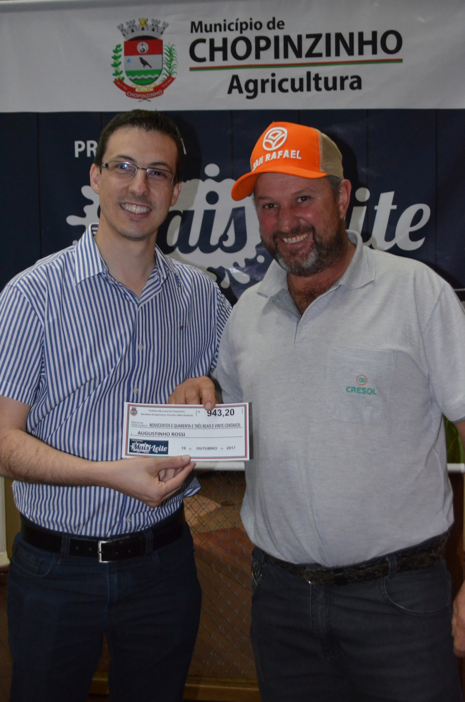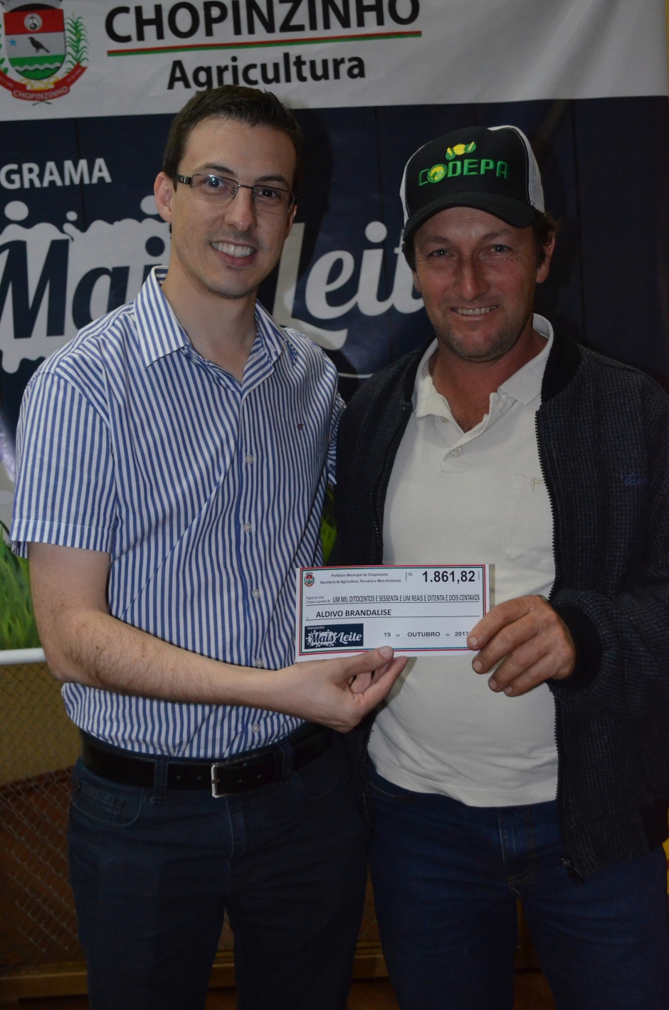 O Programa Mais Leite, lançado em junho de 2017, está na fase de repasse de recursos e insumos para os produtores de leite de Chopinzinho. Na tarde de hoje, 19 de outubro, 138 produtores receberam R$ 345.524,00 de recursos próprios do Município, que vão auxiliá-los para o melhoramento de pastagens, para aumento de produção de leite. Em média, cada beneficiado recebeu R$ 2.503,00. O Programa é desenvolvido pela Administração Municipal, através da Secretaria de Agricultura, Pecuária e Meio Ambiente.