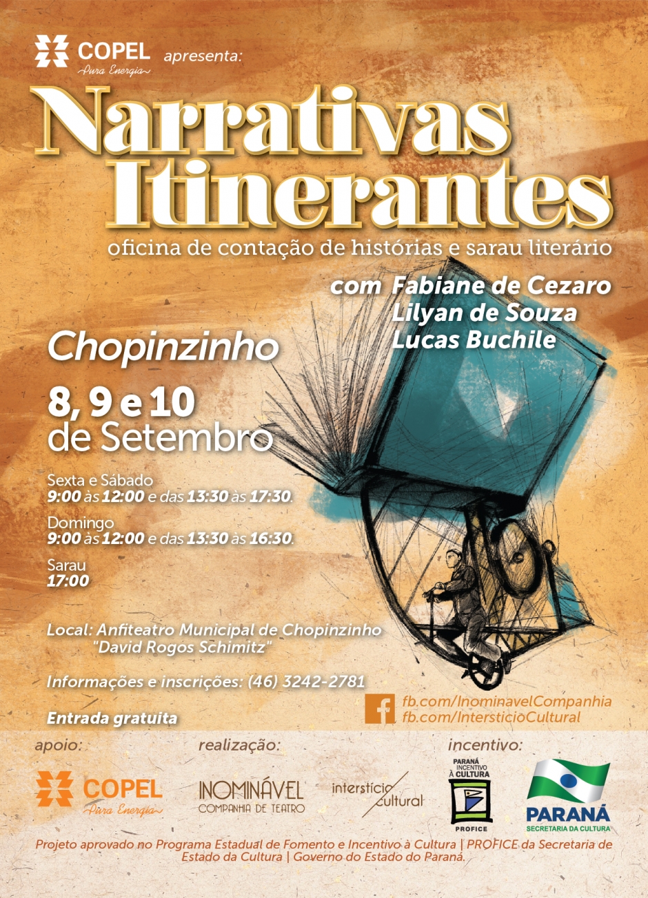 Esta oficina será ministrada por equipe de Curitiba e é voltado para todos que tiverem interesse na temática. A oficina é gratuita, e as inscrições devem ser feitas diretamente no Departamento de Cultura. Gera certificação de 20 horas.