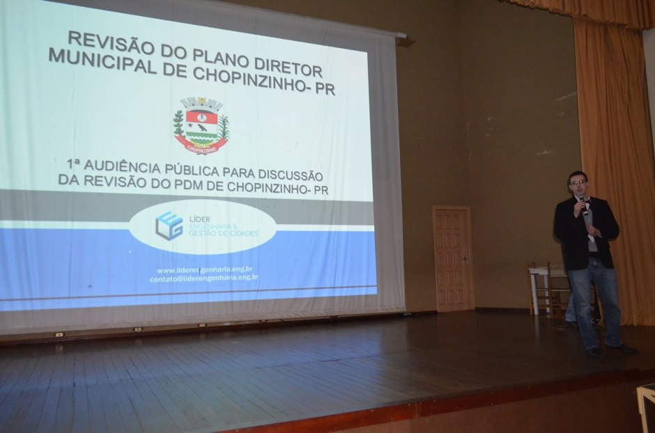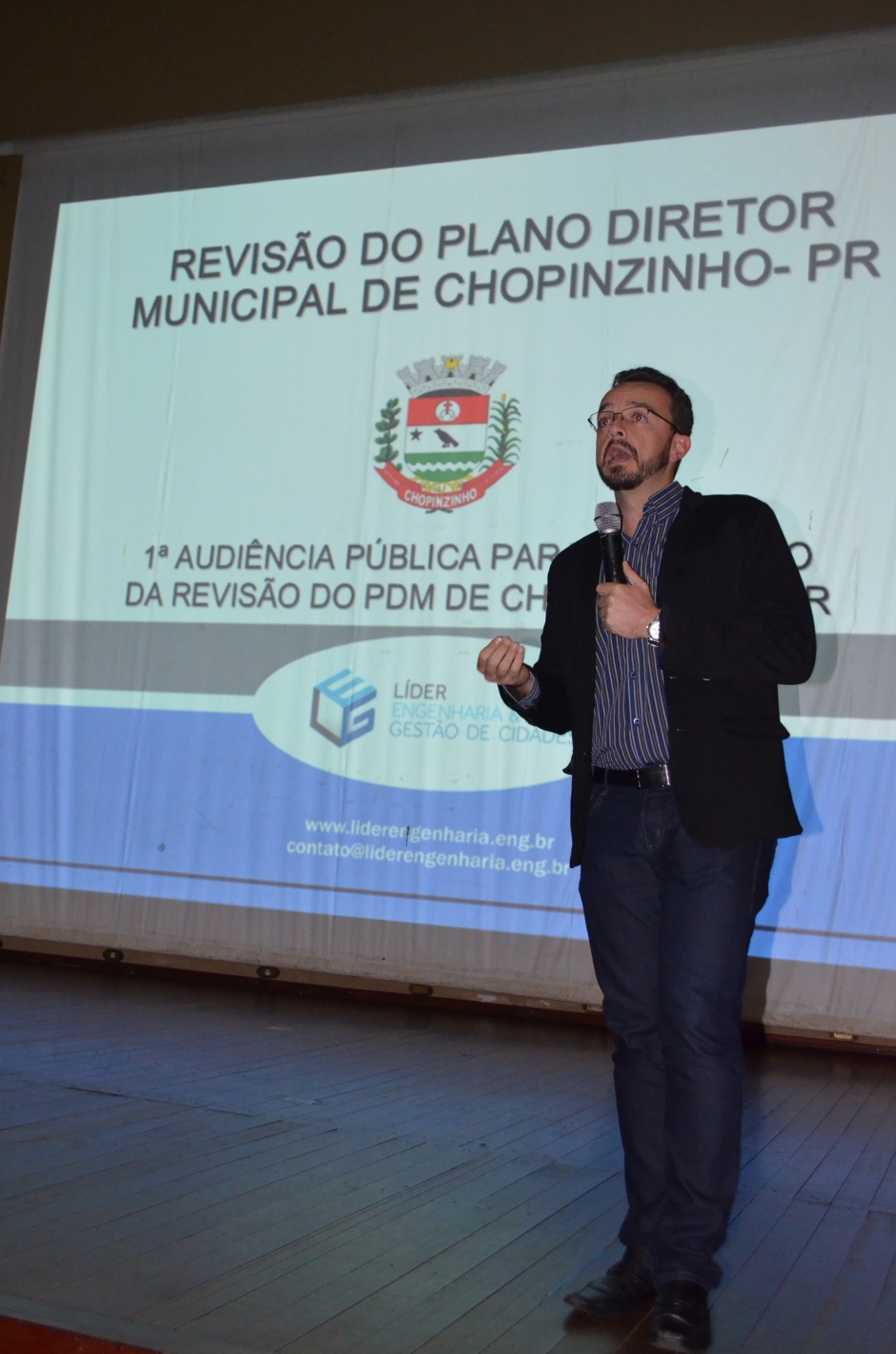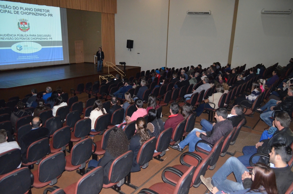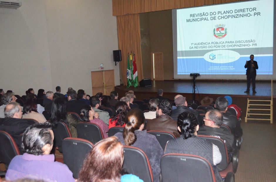 Ontem (05) aconteceu a 1ª Audiência Pública para revisão do Plano Diretor do Município (PDM) de Chopinzinho. Cerca de 100 chopinzinhenses participaram da ocasião, contribuindo para que as mudanças atendam cada vez mais a realidade do Município. Este foi o 1º de quatro encontros, que vão acontecer até o final de 2017.
