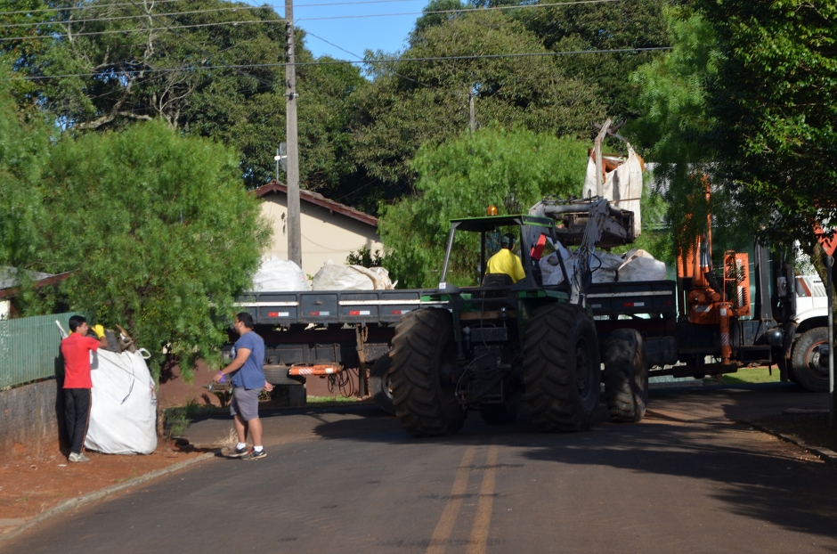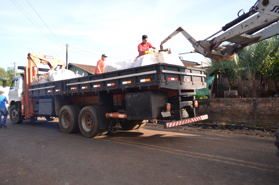 Foram distribuídos 900 bags, para acondicionamento do lixo. Os bags foram espalhados pelas ruas e bairros, e cada morador fez a limpeza de seu terreno, colocando o material nestes locais. O Vice-prefeito Vanderlei Verdi, a frente do Departamento de Urbanismo, conta que foram utilizados 25 caminhões e 13 retroescavadeiras para recolher os bags e demais descartes. “Nosso trabalho foi de organização, de motivação e de ação. Mesmo antes, vínhamos fazendo trabalho em diversas localidades, para conseguir atingir o objetivo da Campanha”, afirma Verdi.