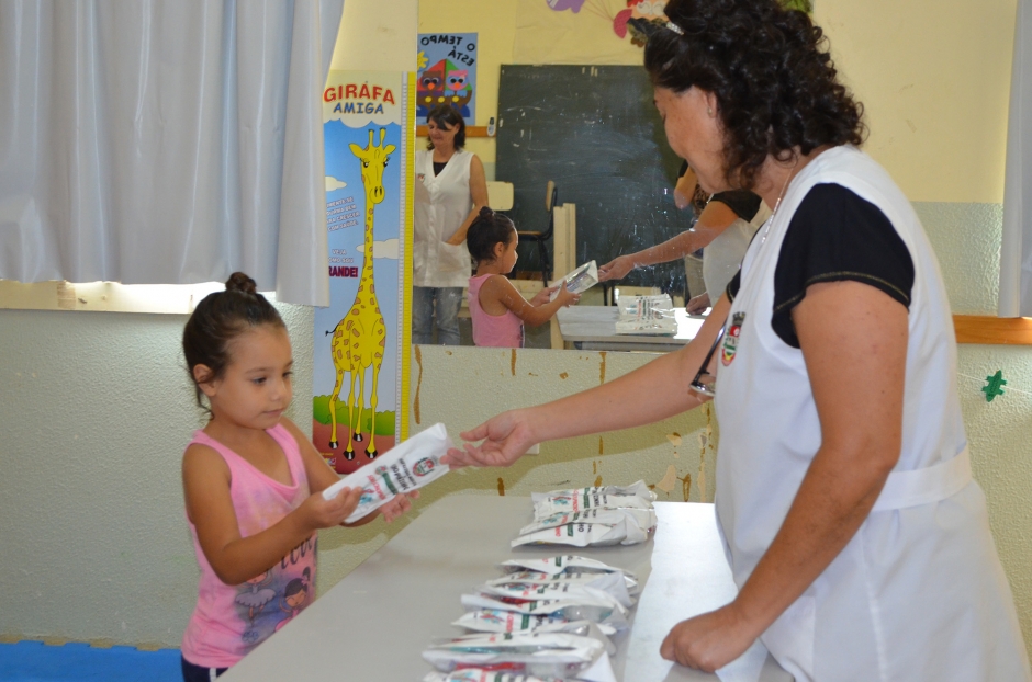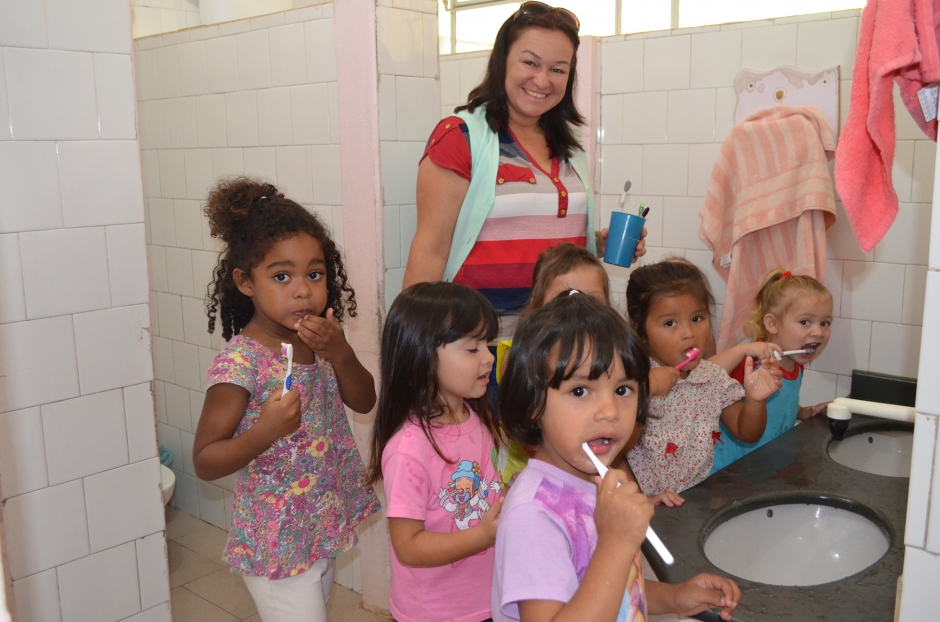 “Solicitamos aos pais na lista de materiais escova de dentes, porque as crianças ficam até 11 horas no CMEI. Algumas famílias não tinham condições de trazer, por isso solicitamos à Secretaria de Saúde, para que as crianças possam fazer higiene bucal adequada na escola”, explica a Diretora do CMEI Criança Esperança, Cristiane Verdi. Ao longo do dia, as crianças fazem escovação três vezes, após o café-da-manhã, almoço e janta. Os kits foram entregues pela dentista Édina Kajihara e auxiliar de dentista, Jucene Schneider.