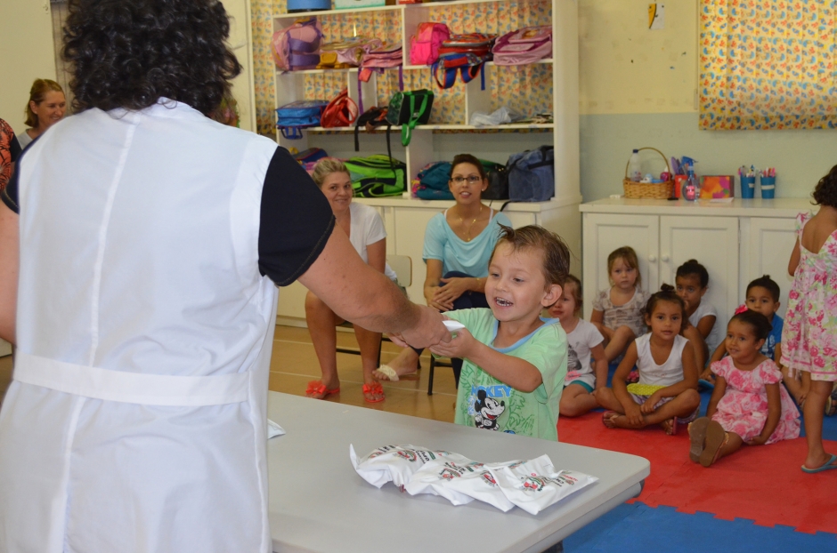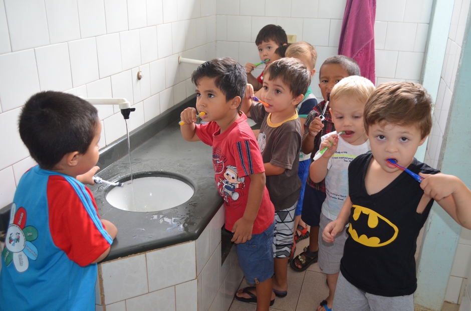 Na tarde de hoje, 24 de fevereiro, as crianças do CMEI Criança Esperança receberam kits de escovação, compostos de escova, creme e fio dental. Através da Secretaria de Saúde, 80 kits foram entregues para serem usados na escola, onde as crianças permanecem em período integral.