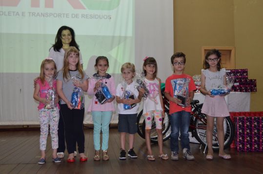 Foram premiados os 1º, 2º e 3º lugares nas categorias frases, redações e desenhos. Receberam menção honrosa alguns dos trabalhos destaques, em cada categoria. Também, receberam prêmio a Escola que arrecadou maior quantidade de resíduos (contagem proporcional ao número de alunos), que foi a Escola Municipal de Excelência, e a Escola com melhor qualidade de resíduos coletados, a Escola Municipal Tancredo Neves. A diretora da Excelência, Mari Lucia Lazarotto, conta que a escola se uniu no projeto, com professores, alunos e equipe pedagógica, porque gostariam de um computador, que foi o prêmio para o 1º lugar. “As crianças levaram para casa bilhetes, avisando aos pais e responsáveis. Todos se empenharam, cada dia com mais engajamento e trazendo mais resíduos e acredito que foi esta união que fez com que ganhamos”, diz Mari Lucia. A Comissão responsável pela escolha dos ganhadores foi formada por representantes da Secretaria de Educação, Secretaria de Agricultura e da Empresa.