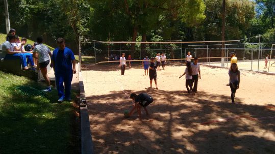 A programação começou a partir das 13 horas, com a divisão de três grandes grupos, sendo direcionada para cada grupo uma atividade – vôlei de areia, futebol e atividades lúdicas no boque. Após, foi servido lanche e realizada brincadeira na lona com sabão, até as 16 horas.