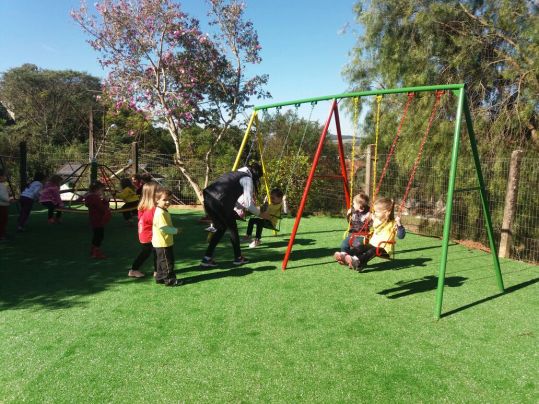 Gangorra, carrossel, balanço, escorregador: tudo pronto para aproveitar. Através da Secretária Municipal de Educação, foi concluído na semana passada a revitalização do parquinho da Escola Municipal Tasso Azevedo da Silveira. A nova revitalização foi feita através da substituição de areia por grama sintética, muro, e reforma dos brinquedos.