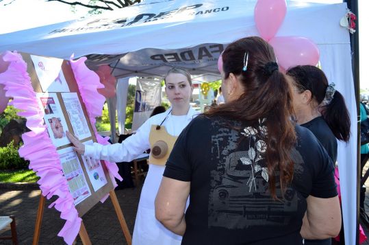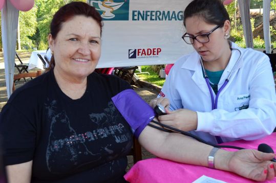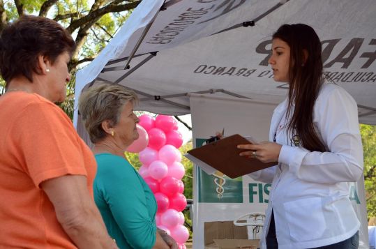 A coordenadora da Caravana da Saúde em Chopinzinho e professora do curso de Enfermagem da FADEP, explicou que esta acao integra a Caravana da Saúde que tem o objetivo de promover a prevenção de doenças e a manutenção de hábitos saudáveis, agrega valores aos conhecimentos adquiridos em sala de aula, colocando os alunos em contato com a população e vivenciando de perto as demandas de nossa sociedade atual. Este fator, segundo Analice, permite aos acadêmicos da FADEP tornarem-se profissionais ainda mais preparados para sua inserção no mercado de trabalho. “Promovemos através desta iniciativa, um circuito para a disseminação de informações relacionadas à saúde da mulher e neste momento especialmente, estamos orientando sobre os meios de prevenção ao câncer de mama e de colo uterino, que iniciam desde uma alimentação adequada e controle da obesidade, passando pela prática esportiva e importância de uma postura adequada, à realização periódica de exames preventivos ao câncer de mama e de colo de útero, até o acompanhamento psicológico dos pacientes”, explicou.