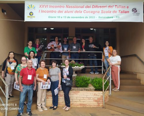 Dos dias 11 a 13 de novembro deste, Sananduva-Rs., foi palco de intensa imersão na Cultura Taliana, no XXVI Incontro Nassional dei Difusori del Talian e I Incontro dei aluni dela Cucagna Scola de Talian dela UNICENTRO e ASSODITA. A Associação dos Difusores do Talian (ASSODITA) tem por finalidade a promoção da cultura, defesa e conservação do patrimônio histórico e artístico; cultural material e imaterial, com foco na Língua e na Cultura Talian escrita e falada, em ações de salvaguarda, valorização e difusão através de qualquer meio de comunicação.