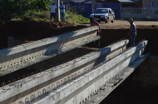 Vigas estão sendo implantadas na ponte do Loteamento Bela Vista