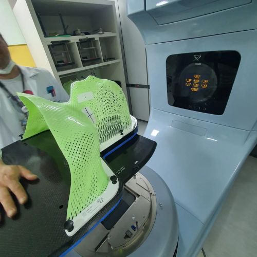 Também, nesta mesma oportunidade, foi realizado a visita nas dependências do hospital, na ala de radioterapia e foi possível observar como é realizado a preparação do paciente para se submeter ao tratamento oncológico.