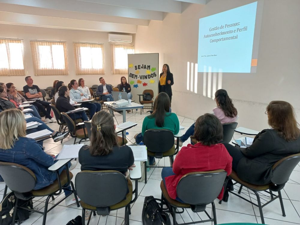 No dia 26 de julho os diretores das instituições de ensino da rede participaram de formação com a professora Luana sobre “Gestão de pessoas: autoconhecimento e perfil comportamental”.Foram dias vividos intensamente onde além de repensar a prática pedagógica, refletir sobre o atual contexto educativo, os professores tiveram acesso a novas estratégias de ensino. Planejar o ensino considerando a criança em sua singularidade, contemplando os direitos de aprendizagem, estimulando autonomia, criatividade e efetivando aprendizado. Oportunizar formação a todos que atuam no contexto escolar é validar a responsabilidade de cada um e compreender que Aprender na escola de forma alegre, contextualizada, representa aprender para a vida. Que todos educam e se educam nesta linda caminhada.