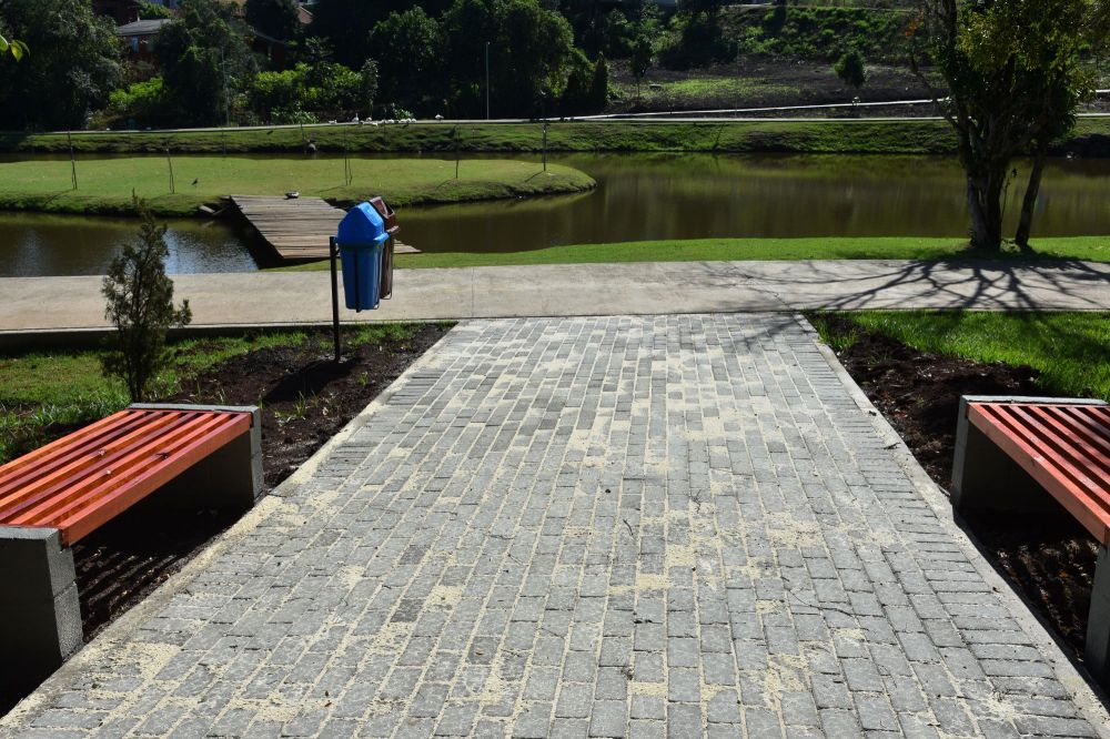 Parque do Lago recebe bancos, lixeiras e pista de passeio