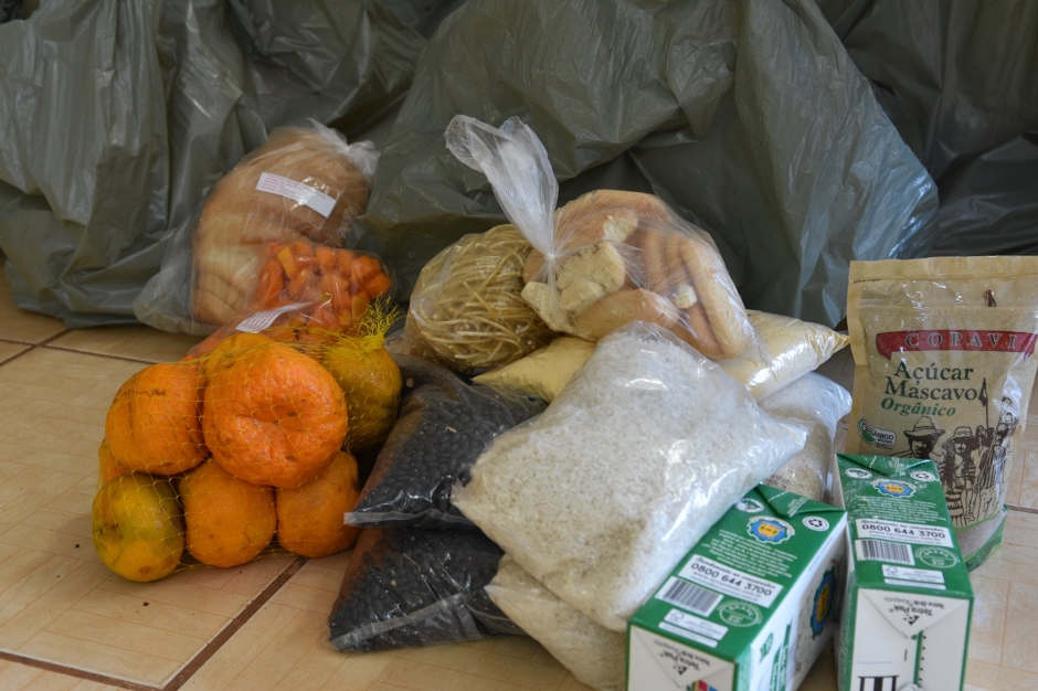 Cada cesta pesa cerca de 20 kg e é composta por arroz, feijão, farinha de mandioca e milho, pão caseiro, tubérculos, hortaliças, leite, frutas e ovos, além do kit de higiene e limpeza. Cada família vai receber duas cestas básicas, uma agora e outra daqui 20 dias.