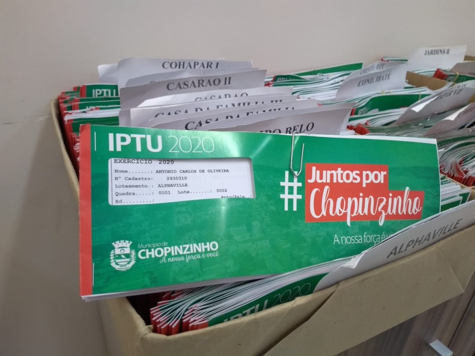 Na busca de proporcionar segurança e fortalecer as ações de combate ao novo Covid-19, a prefeitura de Chopinzinho prorroga o prazo de vencimento do Imposto Predial e Territorial Urbano (IPTU) 2020, e disponibiliza acesso ao carnê pela internet. A entrega inicia nesta terça-feira (26). Para quem optar pelo pagamento em cota única, além de ter uma prazo maior, com vencimento no dia 30 de junho, o desconto é de 15%.