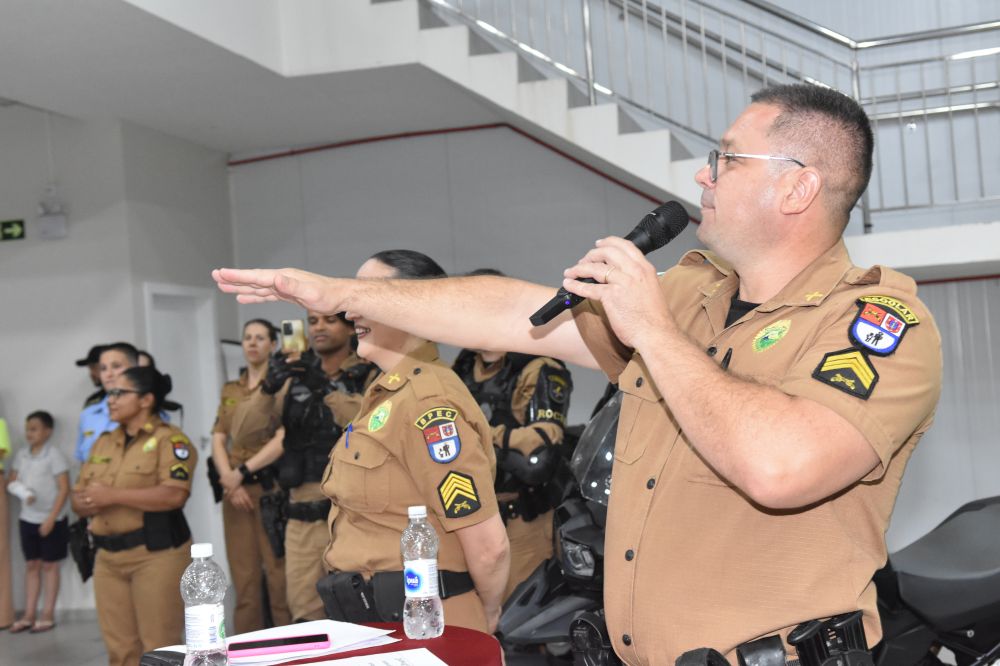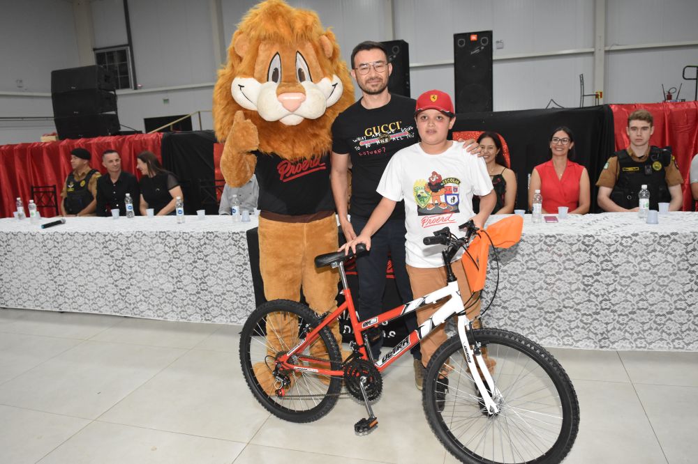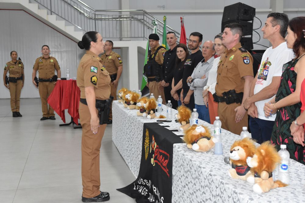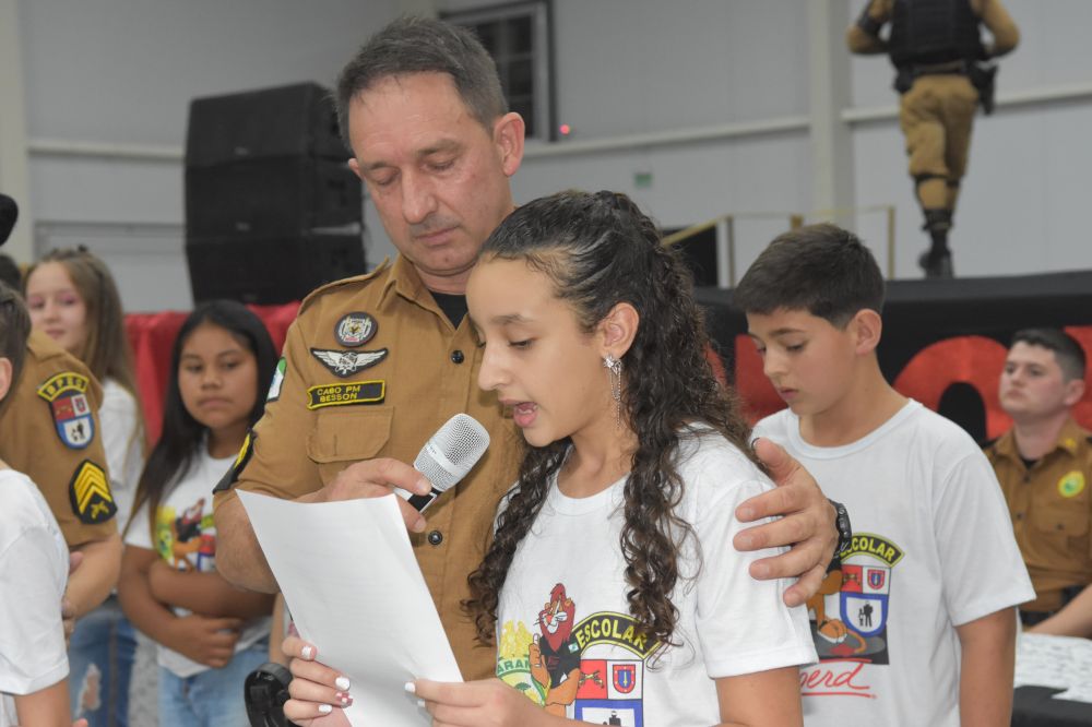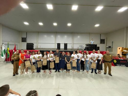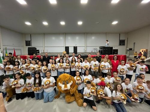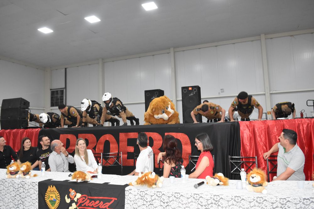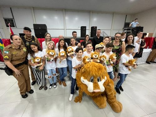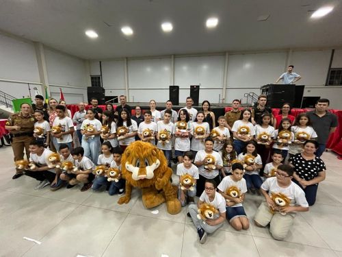 Na noite da última terça-feira, (12) aconteceu a formatura de 265 alunos participantes do PROERD – Programa Educacional de Resistência às Drogas. As aulas do curso foram desenvolvidas durante o segundo semestre letivo com os alunos do quinto ano em nove escolas municipais e nas duas escolas particulares de Chopinzinho. As atividades foram ministradas pela Sargento Claricéia Mafioletti e pelo Soldado Besson. Durante as aulas, os alunos tiveram conhecimento sobre quais são as drogas mais comuns e aprenderam estratégias para evitar o consumo de drogas, como se proteger e como buscar ajuda caso necessário. No evento de formatura estiveram presentes os alunos, professores da turma, diretores de escolas, familiares, padrinhos dos formandos, autoridades locais, policiais do Batalhão de Patrulha Escolar - BPEC, representado o Comando do Batalhão, Tenente Haesbaert, representado o Comando da Policia Militar de Chopinzinho, Tenente Adam, Policiais da ROCAM do 3°BPM, e todo o efetivo de Instrutores do PROERD que atuam no Sudoeste do Paraná. O Prefeito Edson Luiz Cenci parabenizou os policiais responsáveis pelo projeto desenvolvidos durante o curso e falou da importância do apoio do poder público. “ Um projeto maravilhoso que ensina o quanto é importante dizer não às drogas. Foram 10 encontros desenvolvidos pela Sargento Claricéia Mafioletti e pelo Soldado Besson e queremos agradecê-los pela dedicação e trabalho. A Administração apoia com carinho essas iniciativas, este ano os formandos receberam o mascote do PROERD, pra que cada criança lembre dos ensinamentos ao olhar para o leão Daren, completou o prefeito. Foi uma noite linda, contagiante e alegre. As crianças participaram de brincadeiras com os policiais, houve sorteio de brindes, se emocionaram com a leitura das redações e alguns depoimentos e receberam carinhosamente o mascote PROERD – leão Daren. Todos os 265 alunos participantes do PROERD 2023, foram presenteados com um leão Daren de pelúcia. Ações como essa são apoiadas e incentivadas pela Administração Municipal juntamente com a Secretaria de Educação, acreditando cada vez mais no poder transformador de educar pessoas para a vida, orientar as crianças ensinando-as a se proteger para uma vida mais saudável e segura.