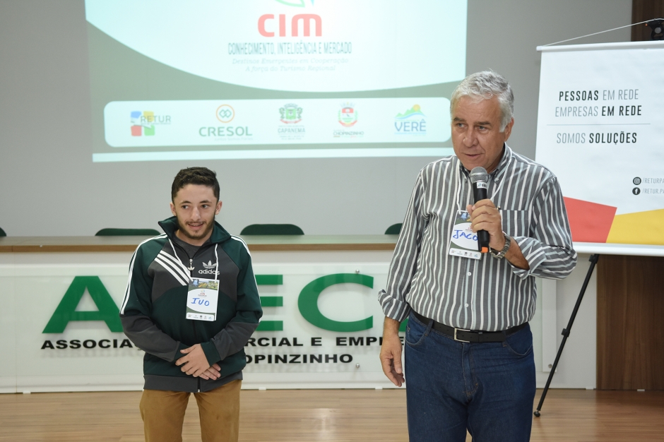“O principal objetivo da oficina e reunir lideranças do município para fazer parte da cadeia do turismo. Conhecer o projeto, mostrar que Chopinzinho tem muitas opções para receber turistas”, explica a Diretora do Turismo, Karin Gnoatto. Na oportunidade foi apresentado o pacto CIM (Conhecimento, Inteligência e Mercado), organizado pela Retur, com apoio da Cresol e que envolve os municípios de Capanema, Chopinzinho e Verê.