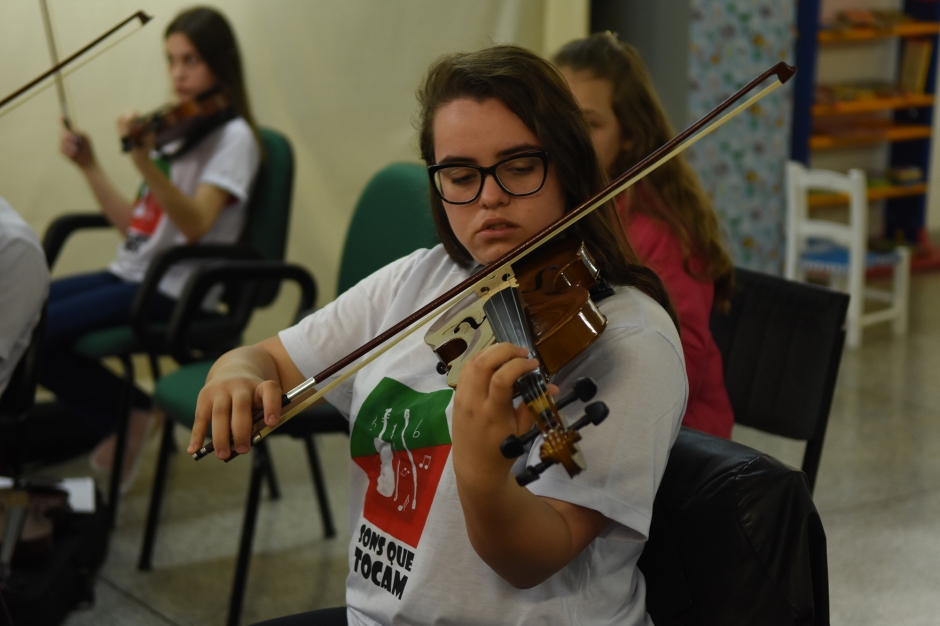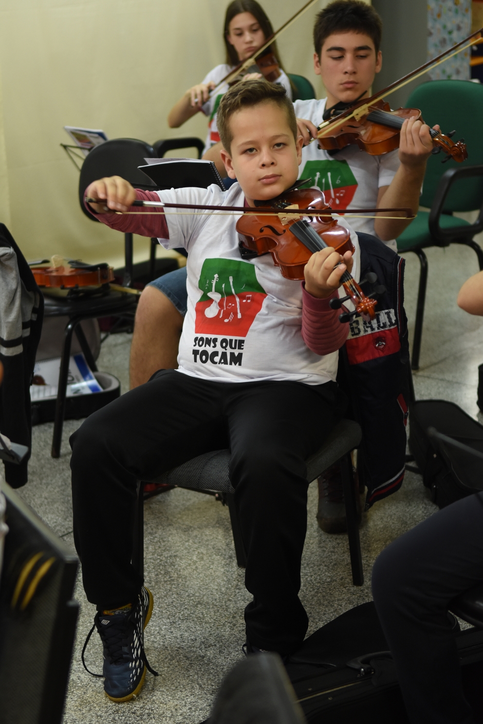 O aluno Allan Levi de Lima Rossi, de 13 anos, é um dos que começaram as aulas de violino, lá no início. Ele conta que, incialmente, não tinha tanta vontade de participar, mas a mãe insistiu. “É um instrumento difícil, cheguei e pensei: meu Deus, o que tô fazendo aqui? Aí o professor pediu quem queria encostar no violino para ver como é. Eu levantei, fiquei um pouco com o instrumento e gostei. Acho que é uma coisa bastante boa, que foi bem investido para nós, crianças”, diz.