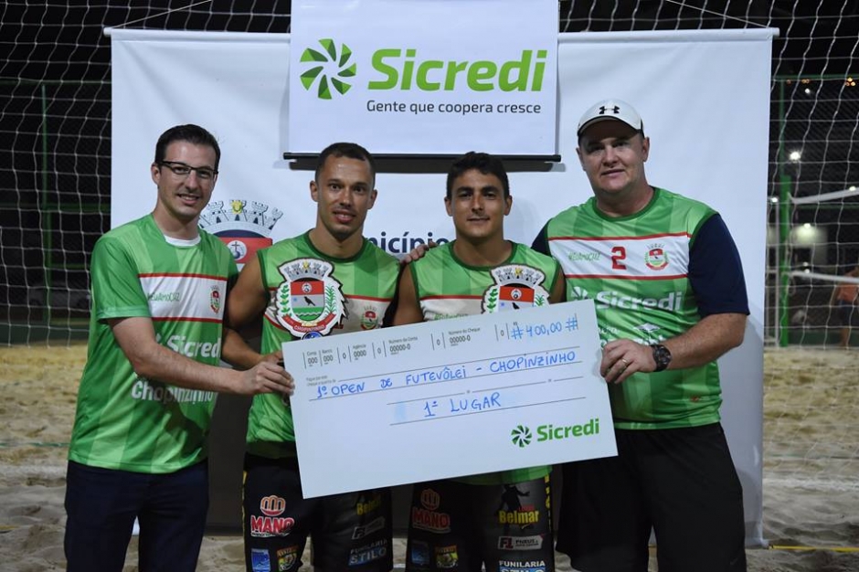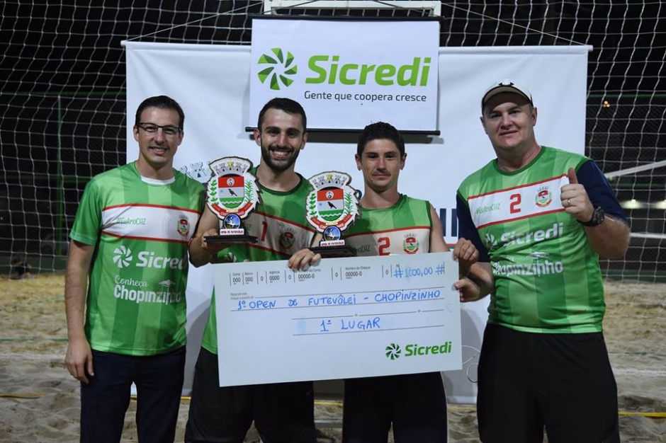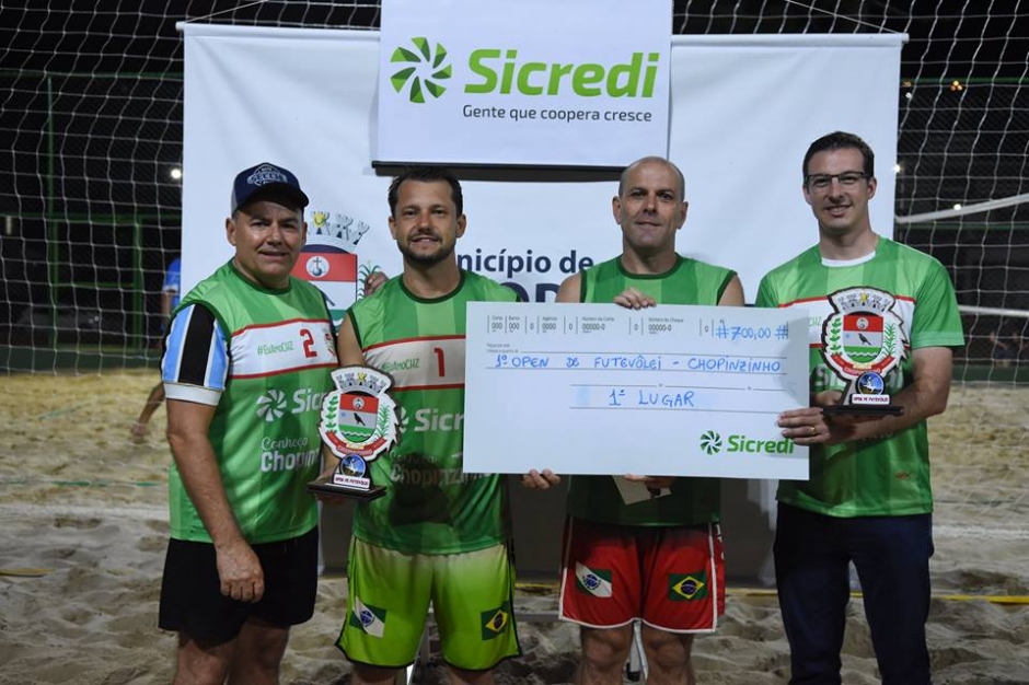 O Open de Futevôlei contou com a parceria da cooperativa Sicredi. A premiação do primeiro ao quarto colocado em todas as categorias ultrapassou R$ 5 mil. Para o diretor de esportes, Fernando Misturini, “dois dias de um evento brilhante, com calor, presença do público e elogios a organização. Superamos a meta que era 60 duplas, esperamos que o ano que vem a gente supere esse número. Momento gratificante para administração, equipe do departamento de esportes, a equipe do futevôlei de Chopinzinho”.