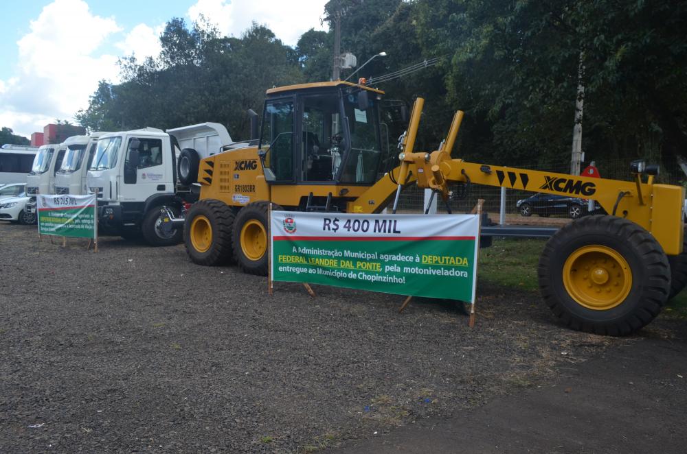 Um caminhão-caçamba, uma moto niveladora, um ônibus e um carro. Ontem (17) foram oficializadas as entregas destes quatro veículos, que vem se somar a frota do Município. Os dois primeiros vão ser utilizados pela Secretaria de Viação e Serviç...