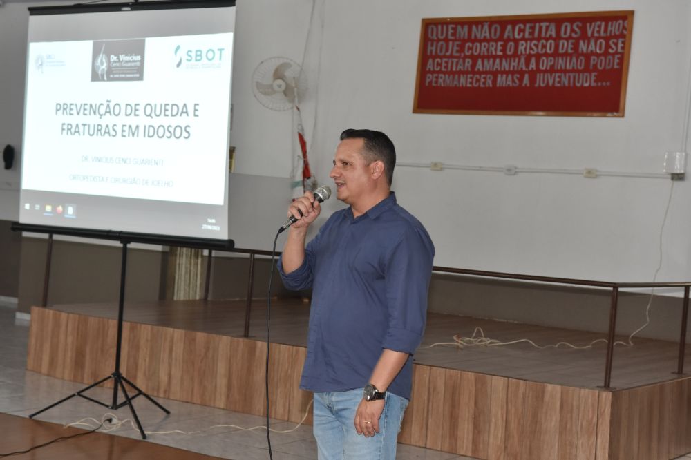 Na oportunidade, os participantes acompanharam a palestra com o profissional Ortopedista Dr. Vinicius Cenci Guarienti, sobre "Prevenção de Quedas na Terceira Idade,"onde os idosos puderam receber informações valiosas para garantir sua segurança e bem-estar.