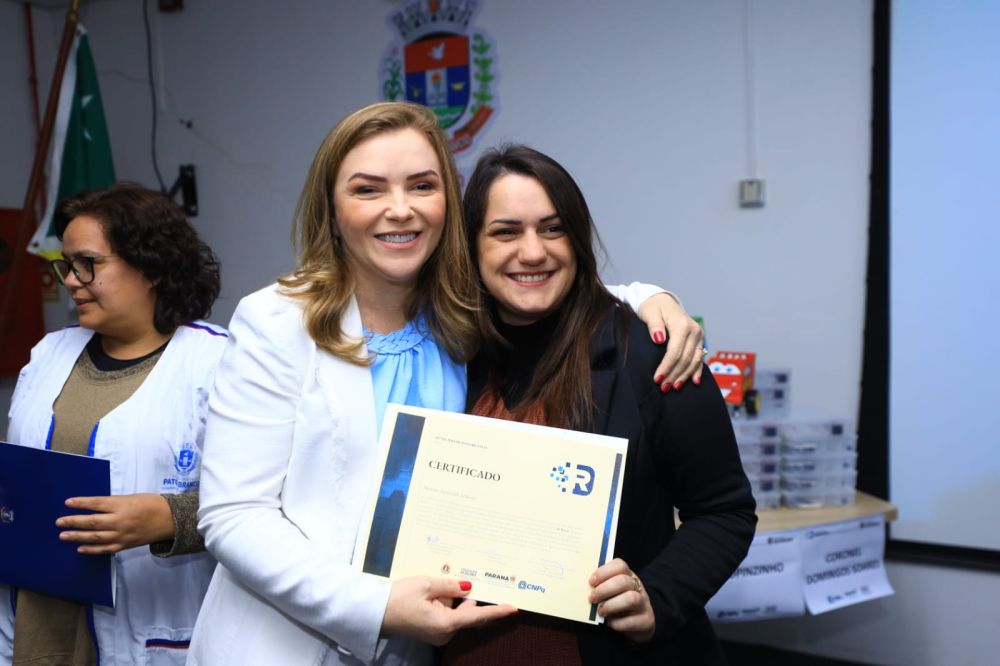 A Secretária de Estado da Mulher, Igualdade Racial e Pessoa Idosa, do Paraná, Leandre Dal Ponte, que é parceira da Fundação Araucária no projeto com a destinação de emendas para capacitação e equipamentos para os municípios de Chopinzinho, Clevelândia, Coronel Domingos Soares, Coronel Vivida, Itapejara D’Oeste, Mariópolis, Palmas, Pato Branco, Saudade do Iguaçu e Sulina, comentou sobre a oportunidade de conhecimento na área da tecnologia e as diversas possibilidades proporcionadas às crianças. “Uma grande oportunidade para redução das desigualdades sociais que ainda existem em nossa região, mudando a história de vida de quem tem vocação, mas não tem oportunidade de compreender como funciona a vida tecnológica, mudando histórias de vida de meninos e meninas”, comentou a Secretária.
