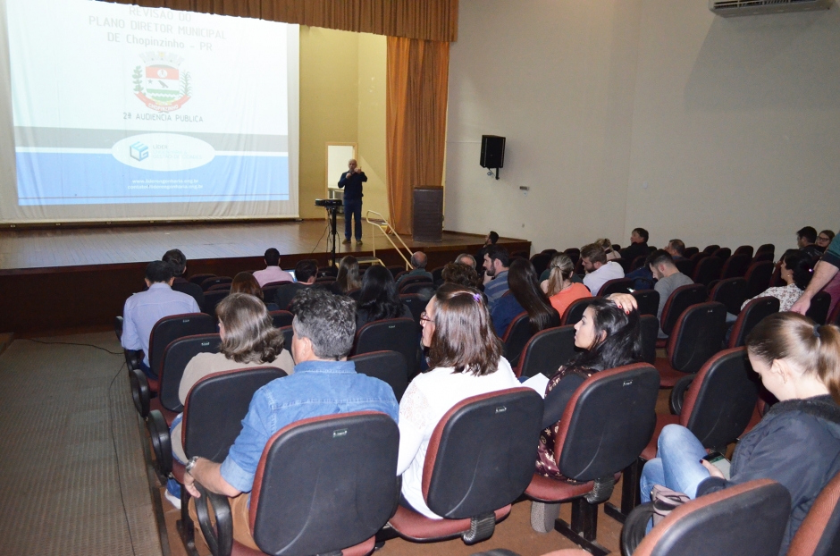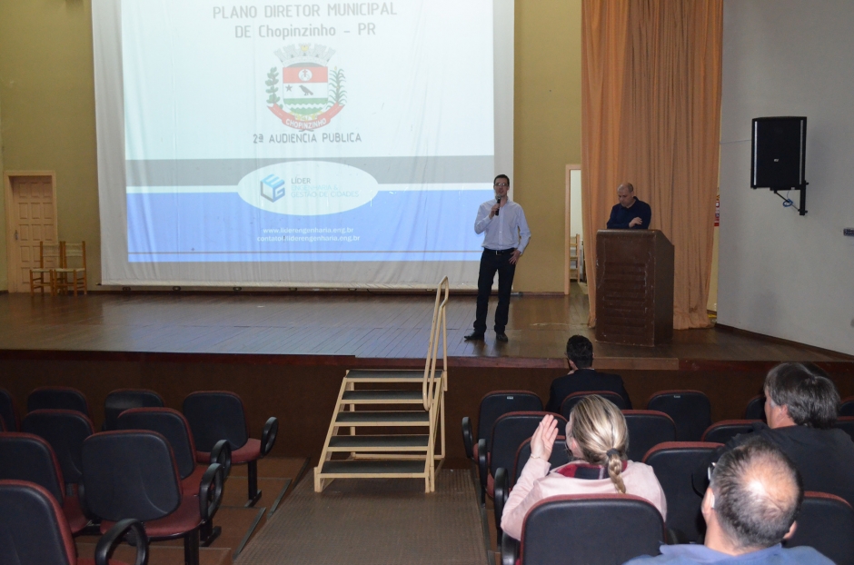 Para a Revisão do Plano Diretor de Chopinzinho, estão sendo realizadas Audiências Públicas, que visam que os moradores contribuam para construção do um novo plano. Na noite de ontem (17), aconteceu a 2ª Audiência, no Anfiteatro David Rogos Schmitz, com a presença de cerca de 60 pessoas. Neste encontro foi apresentado o diagnóstico do Município, feito a partir do cruzamento dos dados técnicos levantados e dos apontamentos realizados na 1ª Audiência.