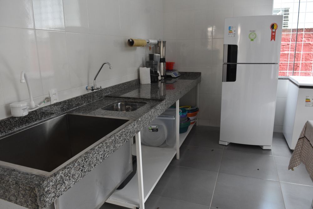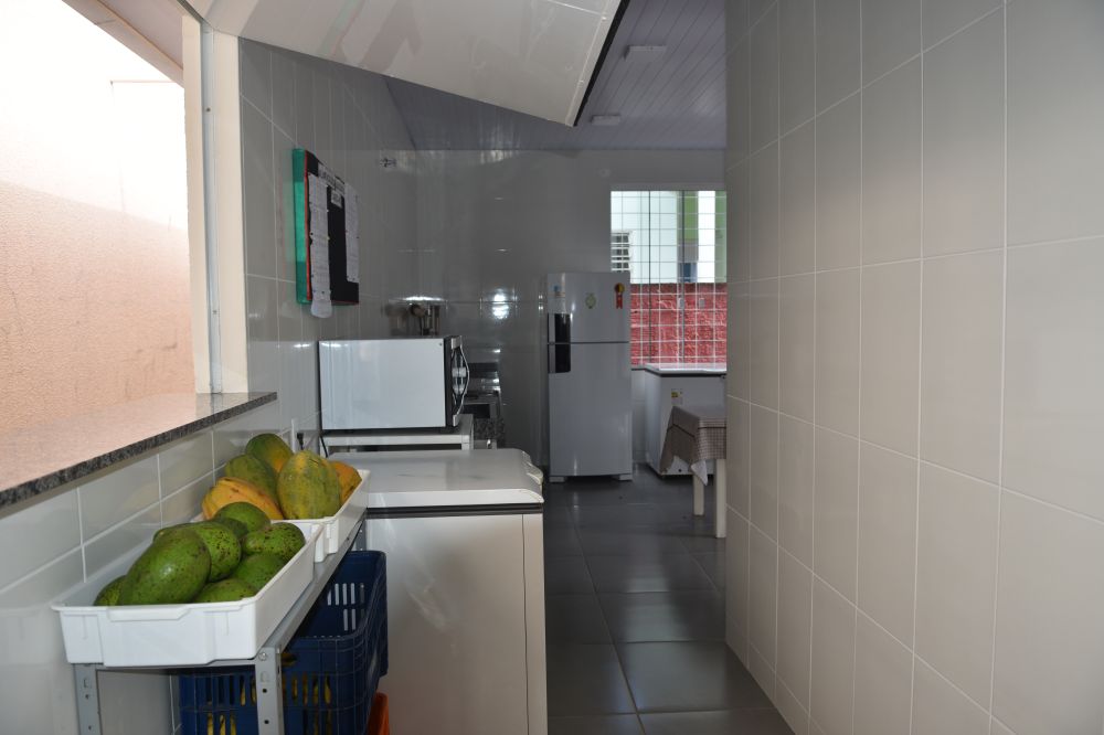 São 39,18m²construídos com adequações no espaço físico (prateleiras, bancadas, grades, portão, aquisição de geladeira) , um investimento de R$ 131.012.66. Um investimento que se reflete em qualidade de ensino, em segurança nutricional e alimentar para as crianças e em bem estar aos colaboradores da instituição.