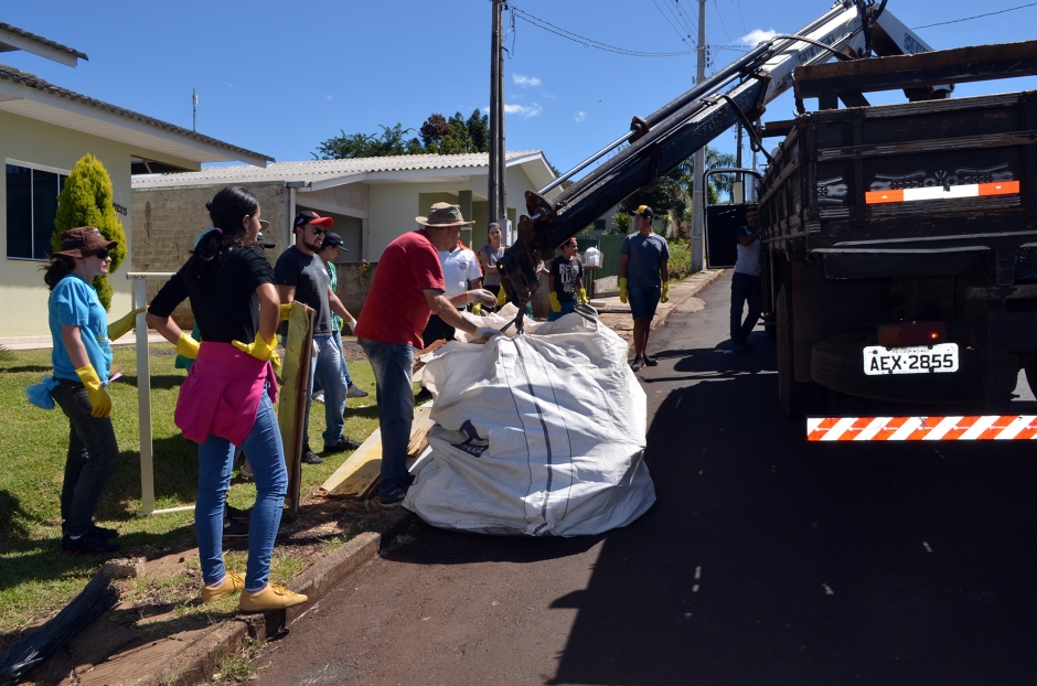 Foram distribuídos 900 bags, para acondicionamento do lixo. Os bags foram espalhados pelas ruas e bairros, e cada morador fez a limpeza de seu terreno, colocando o material nestes locais. O Vice-prefeito Vanderlei Verdi, a frente do Departamento de Urbanismo, conta que foram utilizados 25 caminhões e 13 retroescavadeiras para recolher os bags e demais descartes. “Nosso trabalho foi de organização, de motivação e de ação. Mesmo antes, vínhamos fazendo trabalho em diversas localidades, para conseguir atingir o objetivo da Campanha”, afirma Verdi.