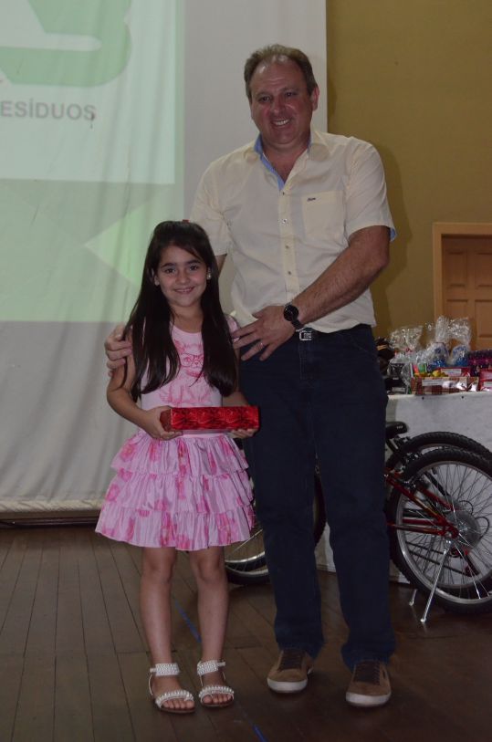 Foram premiados os 1º, 2º e 3º lugares nas categorias frases, redações e desenhos. Receberam menção honrosa alguns dos trabalhos destaques, em cada categoria. Também, receberam prêmio a Escola que arrecadou maior quantidade de resíduos (contagem proporcional ao número de alunos), que foi a Escola Municipal de Excelência, e a Escola com melhor qualidade de resíduos coletados, a Escola Municipal Tancredo Neves. A diretora da Excelência, Mari Lucia Lazarotto, conta que a escola se uniu no projeto, com professores, alunos e equipe pedagógica, porque gostariam de um computador, que foi o prêmio para o 1º lugar. “As crianças levaram para casa bilhetes, avisando aos pais e responsáveis. Todos se empenharam, cada dia com mais engajamento e trazendo mais resíduos e acredito que foi esta união que fez com que ganhamos”, diz Mari Lucia. A Comissão responsável pela escolha dos ganhadores foi formada por representantes da Secretaria de Educação, Secretaria de Agricultura e da Empresa.