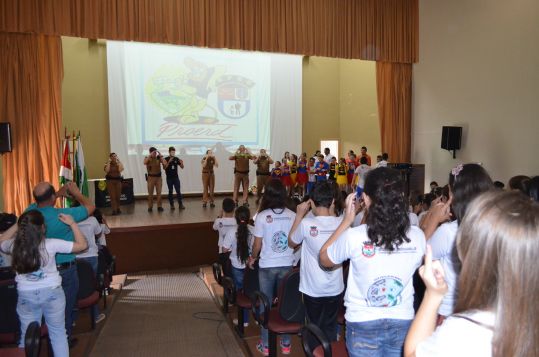 Hoje o dia foi de festa. O Programa Educacional de Resistência às drogas e à violência (PROERD) realizou a formatura de 260 crianças do 5º ano da rede Municipal de ensino, no Anfiteatro David Rogos Schimdt. Foram 8 escolas participantes. O programa é uma promoção da Polícia Militar com a Secretaria de Educação.