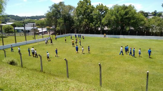 A programação começou a partir das 13 horas, com a divisão de três grandes grupos, sendo direcionada para cada grupo uma atividade – vôlei de areia, futebol e atividades lúdicas no boque. Após, foi servido lanche e realizada brincadeira na lona com sabão, até as 16 horas.