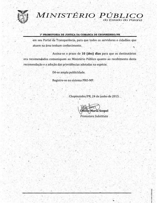 Recomendação administrativa 07/2015 emitida pelo Ministério Público do Paraná