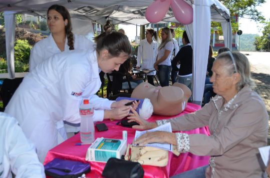 Na ocasião, foram realizadas orientações quanto às formas de prevenção ao câncer de mama de colo uterino, a aferição da pressão arterial, testes de glicemia, repasse de informações sobre alimentação saudável, cálculos do Índice de Massa Corporal (IMC), orientações sobre a prática esportiva, boa postura e problemas na coluna, testes de stress, entre outras coisas.