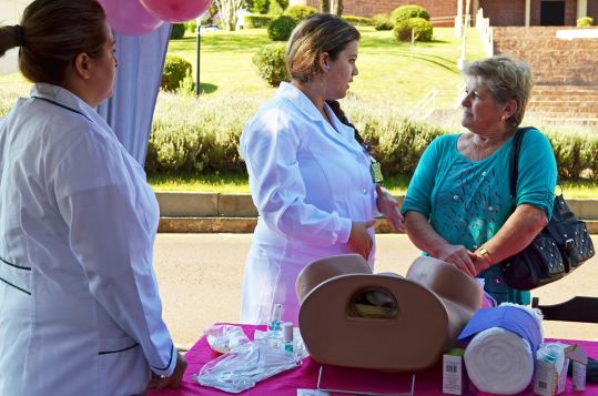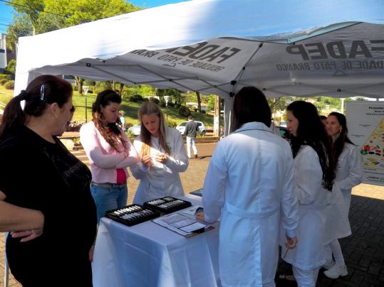 A coordenadora da Caravana da Saúde em Chopinzinho e professora do curso de Enfermagem da FADEP, explicou que esta acao integra a Caravana da Saúde que tem o objetivo de promover a prevenção de doenças e a manutenção de hábitos saudáveis, agrega valores aos conhecimentos adquiridos em sala de aula, colocando os alunos em contato com a população e vivenciando de perto as demandas de nossa sociedade atual. Este fator, segundo Analice, permite aos acadêmicos da FADEP tornarem-se profissionais ainda mais preparados para sua inserção no mercado de trabalho. “Promovemos através desta iniciativa, um circuito para a disseminação de informações relacionadas à saúde da mulher e neste momento especialmente, estamos orientando sobre os meios de prevenção ao câncer de mama e de colo uterino, que iniciam desde uma alimentação adequada e controle da obesidade, passando pela prática esportiva e importância de uma postura adequada, à realização periódica de exames preventivos ao câncer de mama e de colo de útero, até o acompanhamento psicológico dos pacientes”, explicou.