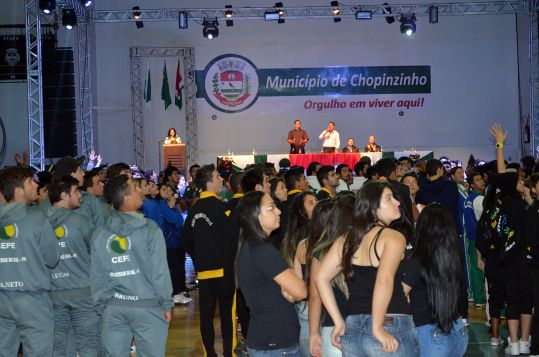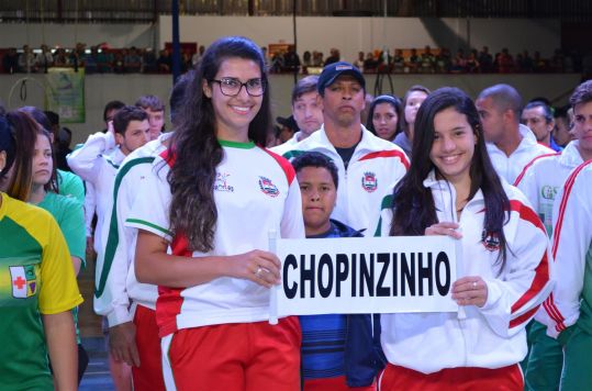 A cerimônia de abertura do 57ª Jogos Abertos do Paraná – Fase Final aconteceu simultaneamente na noite de sexta-feira, 8, nos dois municípios sede da competição. Em Chopinzinho o Centro Esportivo Municipal Dionisto Debona esteve lotado. A população recebeu calorosamente todas as delegações visitantes e pode prestigiar também duas apresentações artísticas do grupo de dança da Secretaria de Esporte de Chopinzinho e do grupo Espaço Sou Arte, de Campo Mourão.
