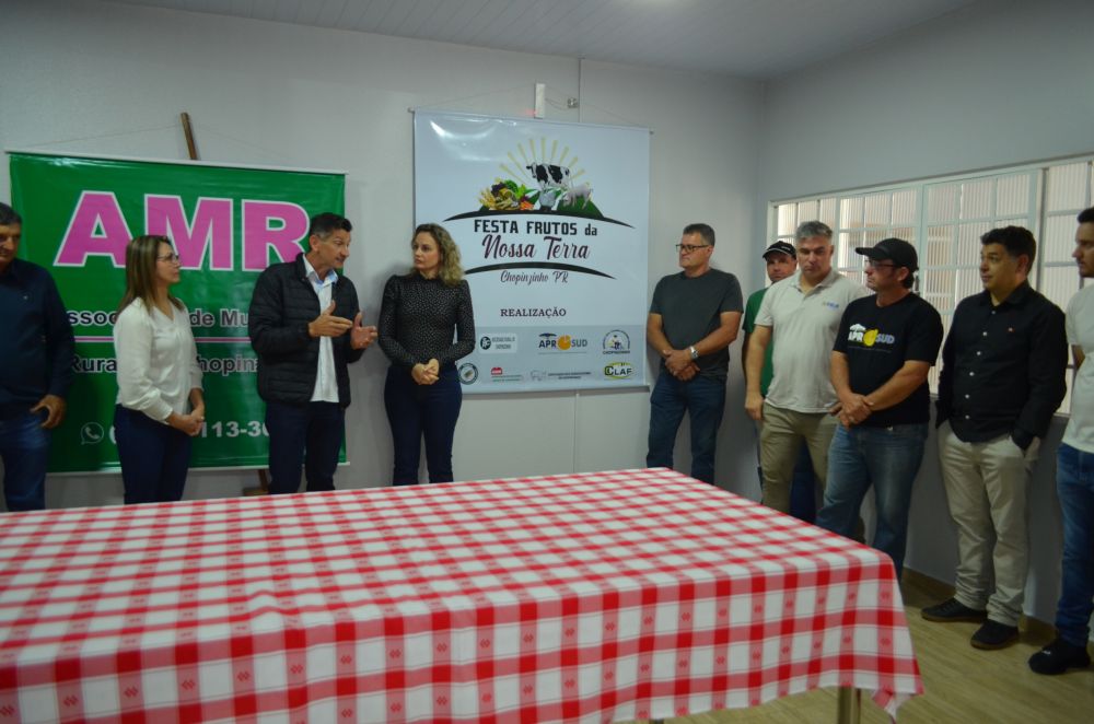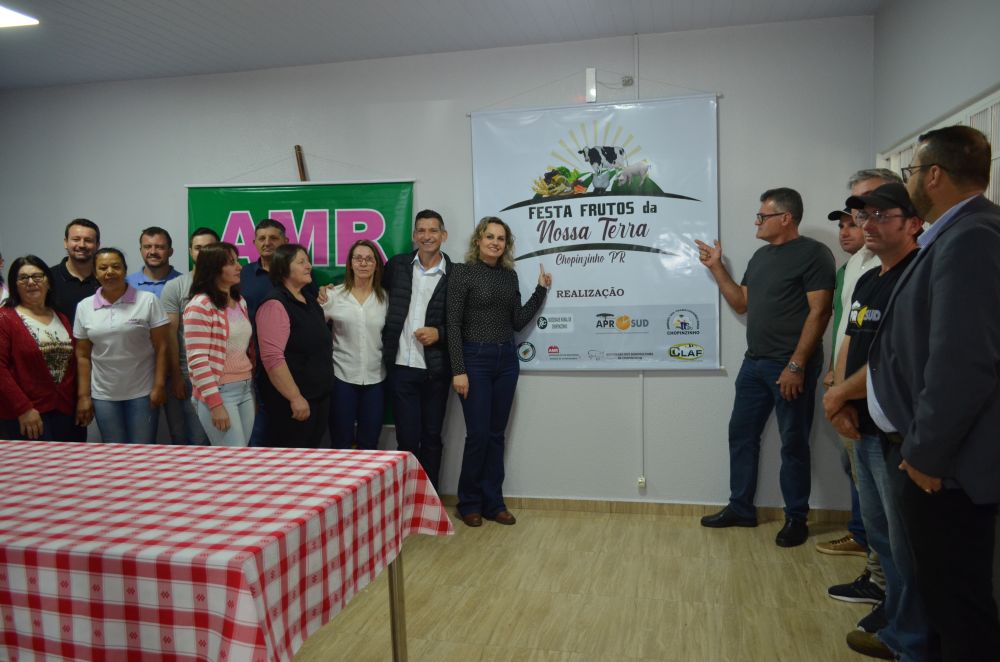 Na manhã desta sexta-feira, (04), aconteceu o lançamento oficial da Festa Frutos da Nossa Terra. Uma comemoração pensada para homenagear e também celebrar o aniversário do Município de Chopinzinho. O lançamento aconteceu na sede da AMR, e reuniu diversas autoridades. O nome “Festa Frutos da Nossa Terra” foi pensado e escolhido pelas associações que representam as diversas culturas e cadeias produtivas do município.