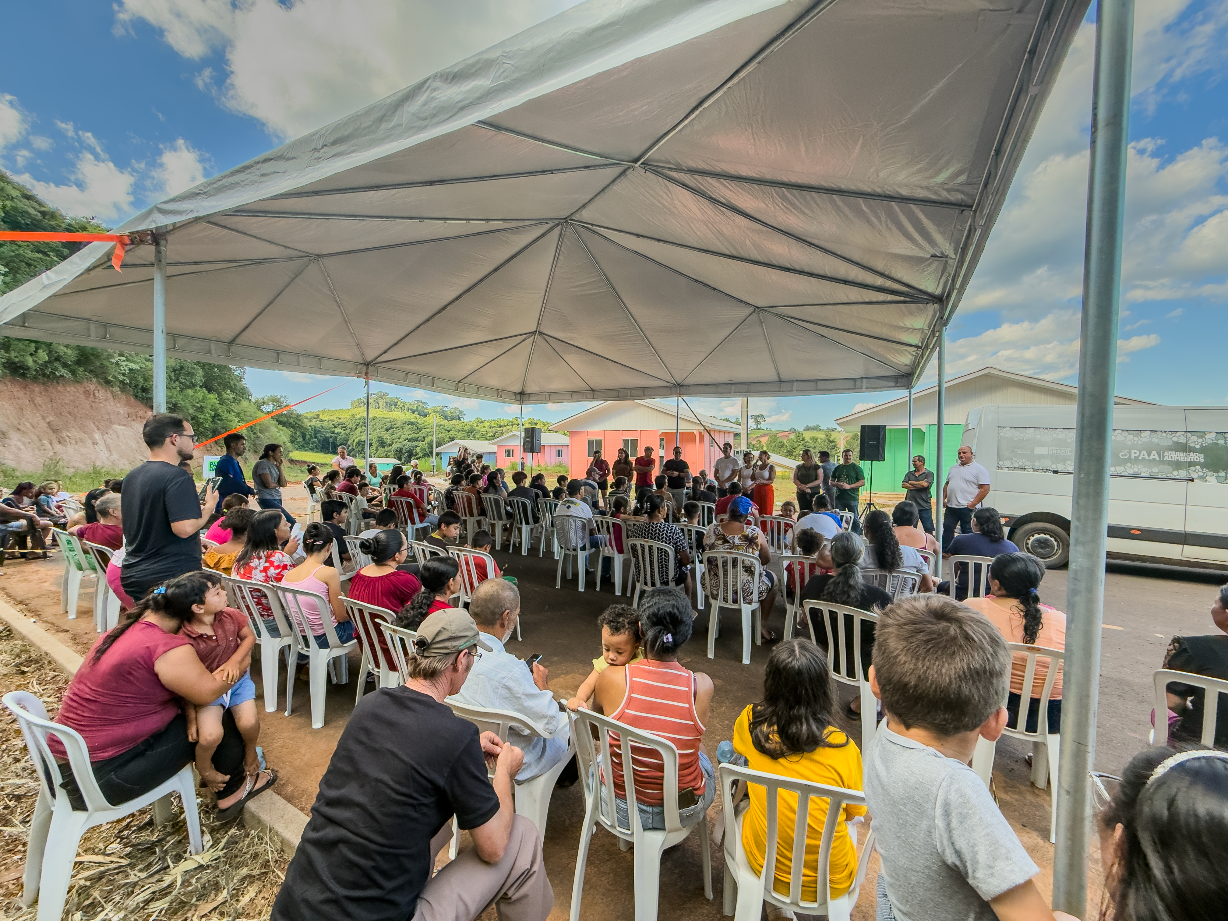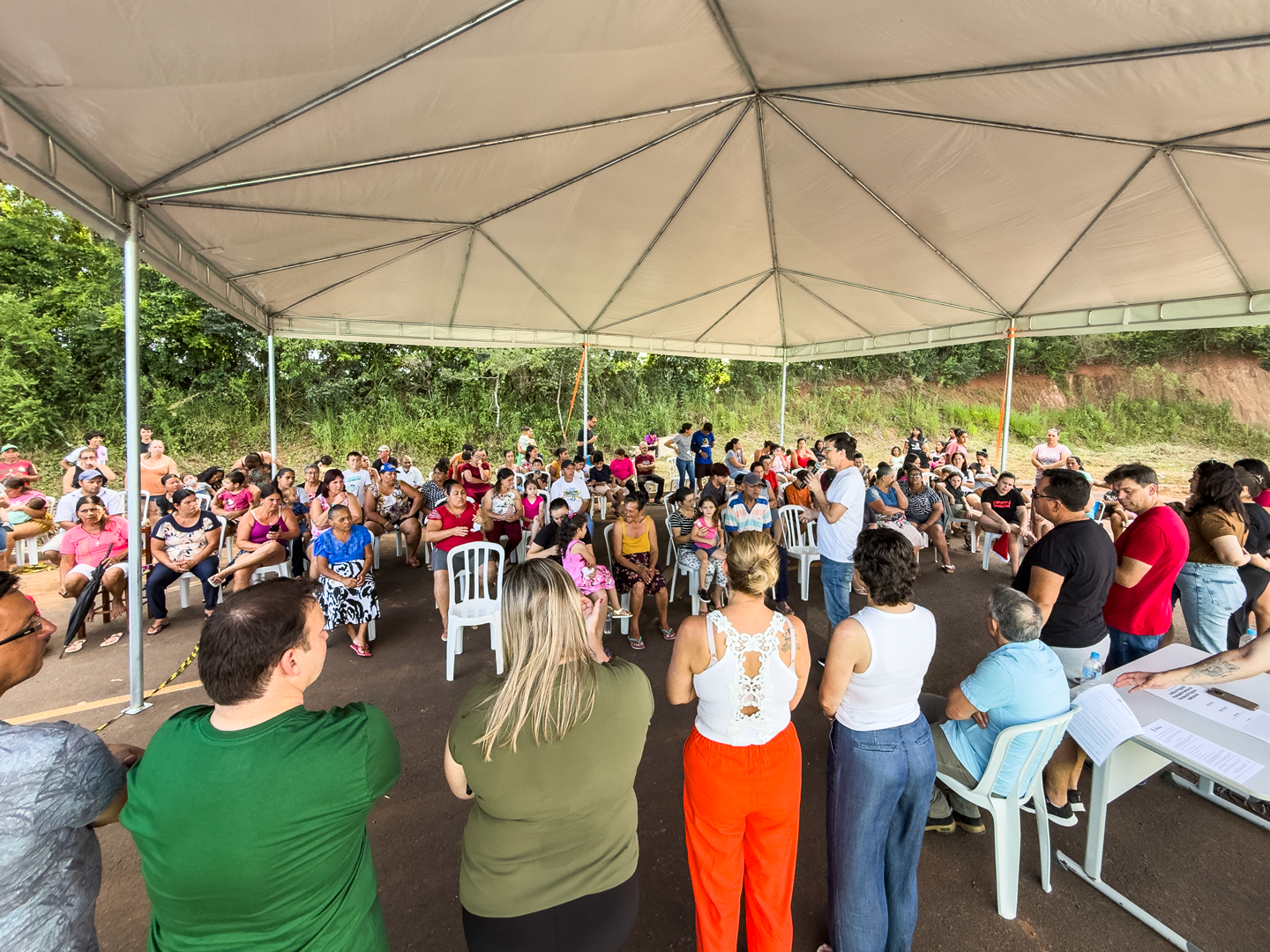 Na ocasião, foi realizado o ato simbólico de assinatura da lei com os moradores. As crianças também participaram do momento, com a entrega de doces e chocolates, tornando o encontro ainda mais acolhedor e próximo da comunidade.