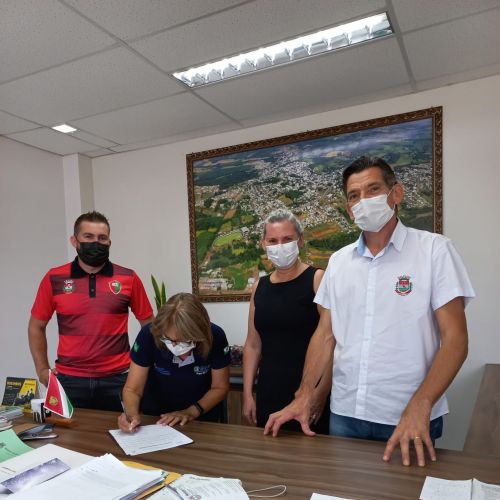 Na quinta-feira (17), os representantes do Núcleo Regional de Educação a senhora Iara Lúcia Tecchio Mezomo, Chefe do Núcleo Regional, o senhor Fábio Andrei França, técnico do Núcleo e também a senhora Joceli Fasolin, Coordenadora dos Jogos Escolares juntamente com o prefeito Neco, o Diretor da Divisão de Esportes, Luiz Eduardo Andolhe e a senhora Roseli Lorenzi, Oficial Administrativo da Sec. de Educação estiveram reunidos para formalizar o termo de compromisso quanto à realização do evento.