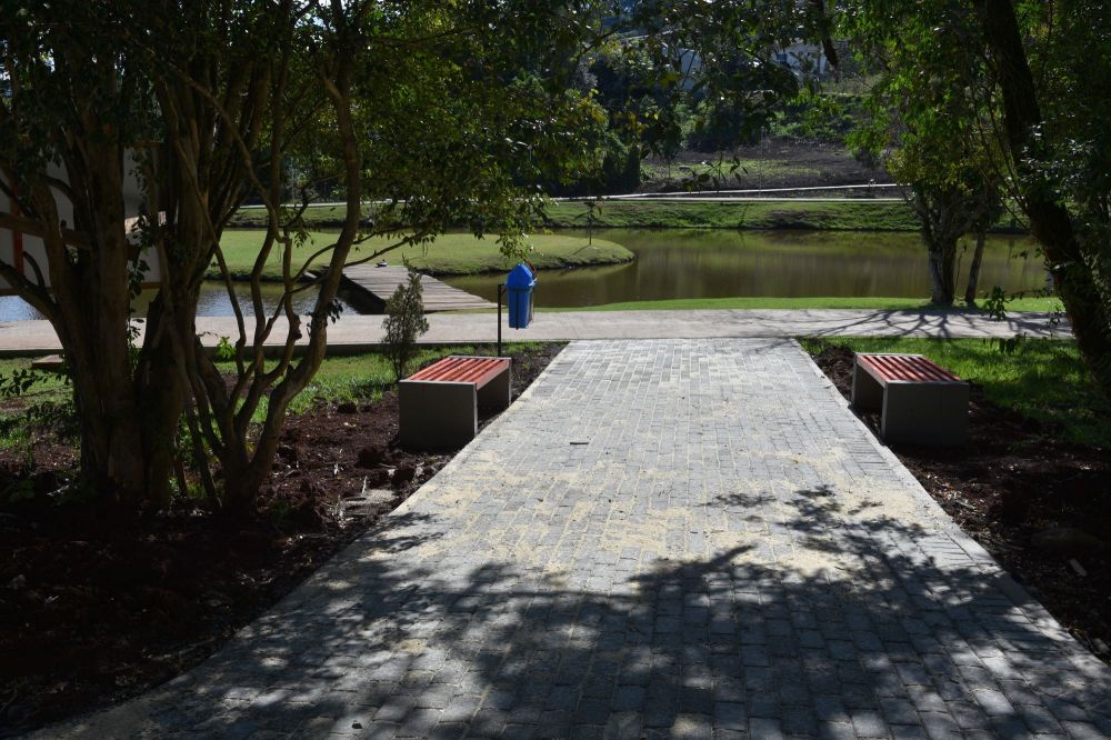 Parque do Lago recebe bancos, lixeiras e pista de passeio