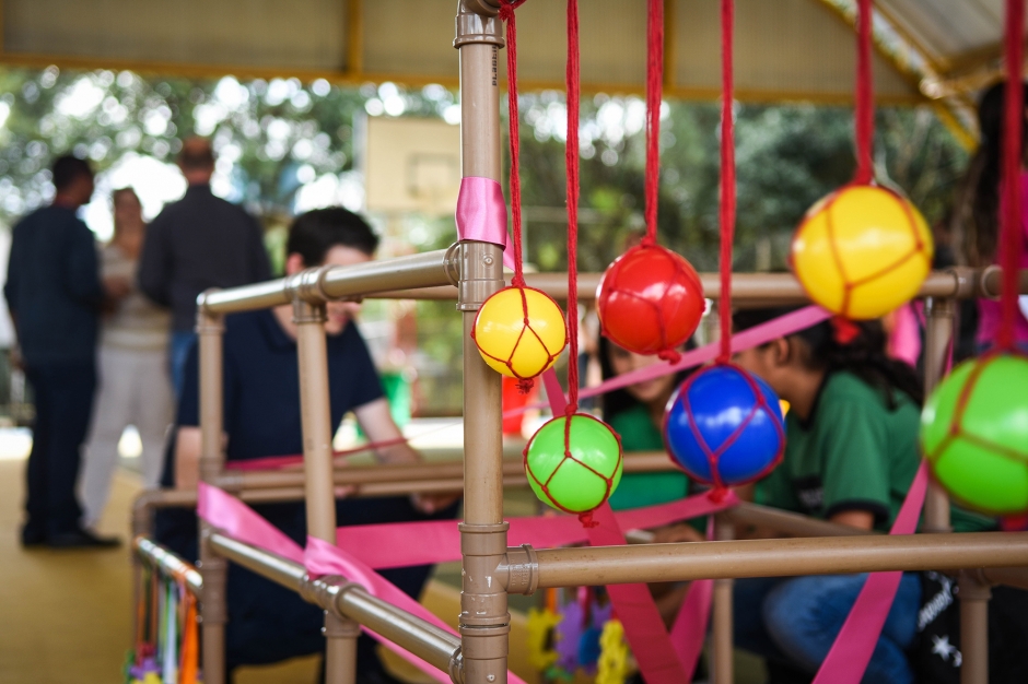 Para os alunos, foi o conhecimento colocado em prática. A Giovana comenta que “Não foi tão fácil. O mais difícil foi montar o primeiro, porque tinha que tirar medida, comprar bolinha e tudo o mais. A gente terminou e tirou a medida dos outros baseado nele”. Já a Marcieli relata que “Foi bem legal, porque daí a gente aprende mais coisas de matemática. Acho que os alunos vão gostar bastante, porque tem bastante coisa legal”.