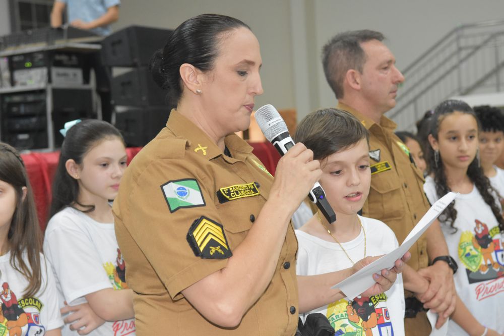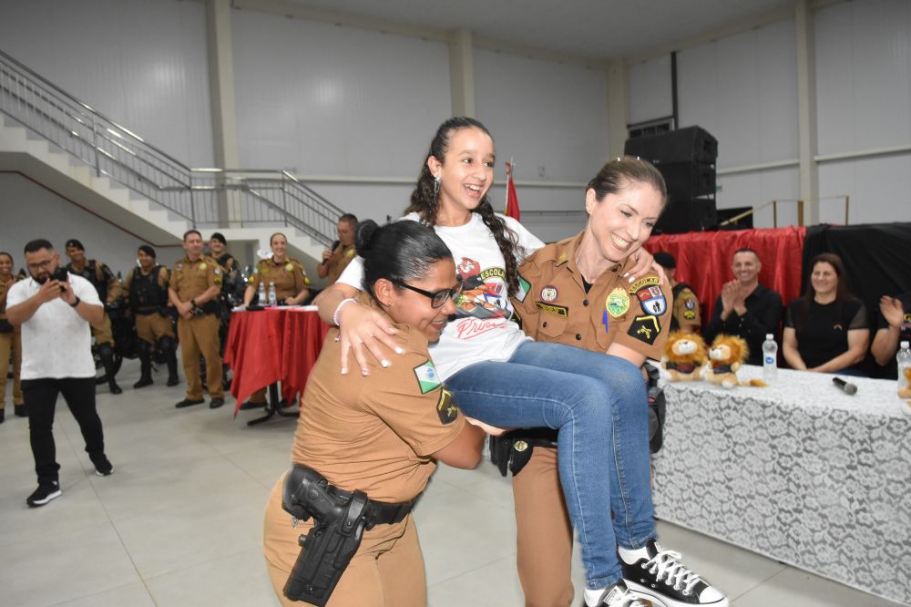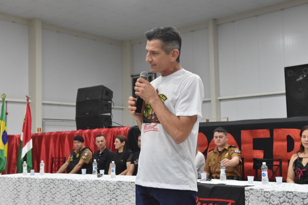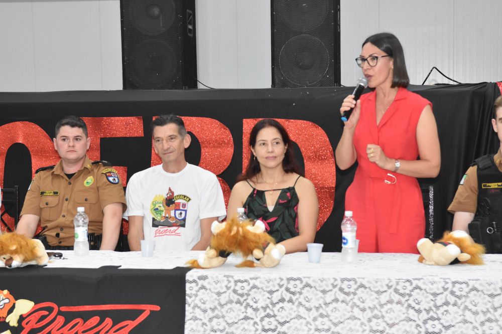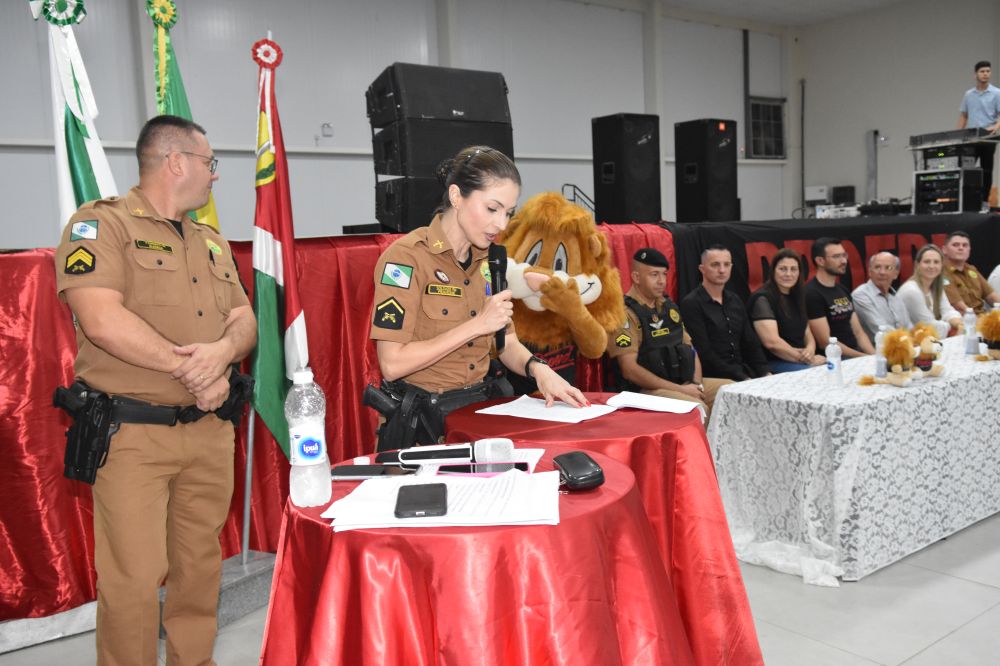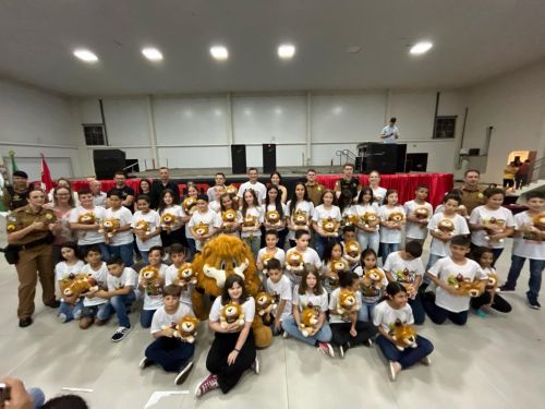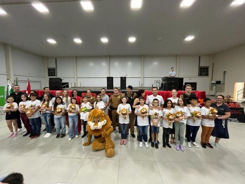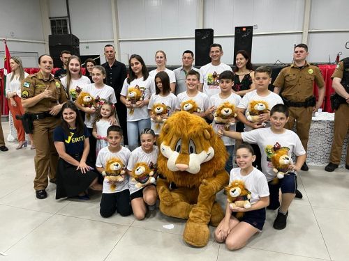 Na noite da última terça-feira, (12) aconteceu a formatura de 265 alunos participantes do PROERD – Programa Educacional de Resistência às Drogas. As aulas do curso foram desenvolvidas durante o segundo semestre letivo com os alunos do quinto ano em nove escolas municipais e nas duas escolas particulares de Chopinzinho. As atividades foram ministradas pela Sargento Claricéia Mafioletti e pelo Soldado Besson. Durante as aulas, os alunos tiveram conhecimento sobre quais são as drogas mais comuns e aprenderam estratégias para evitar o consumo de drogas, como se proteger e como buscar ajuda caso necessário. No evento de formatura estiveram presentes os alunos, professores da turma, diretores de escolas, familiares, padrinhos dos formandos, autoridades locais, policiais do Batalhão de Patrulha Escolar - BPEC, representado o Comando do Batalhão, Tenente Haesbaert, representado o Comando da Policia Militar de Chopinzinho, Tenente Adam, Policiais da ROCAM do 3°BPM, e todo o efetivo de Instrutores do PROERD que atuam no Sudoeste do Paraná. O Prefeito Edson Luiz Cenci parabenizou os policiais responsáveis pelo projeto desenvolvidos durante o curso e falou da importância do apoio do poder público. “ Um projeto maravilhoso que ensina o quanto é importante dizer não às drogas. Foram 10 encontros desenvolvidos pela Sargento Claricéia Mafioletti e pelo Soldado Besson e queremos agradecê-los pela dedicação e trabalho. A Administração apoia com carinho essas iniciativas, este ano os formandos receberam o mascote do PROERD, pra que cada criança lembre dos ensinamentos ao olhar para o leão Daren, completou o prefeito. Foi uma noite linda, contagiante e alegre. As crianças participaram de brincadeiras com os policiais, houve sorteio de brindes, se emocionaram com a leitura das redações e alguns depoimentos e receberam carinhosamente o mascote PROERD – leão Daren. Todos os 265 alunos participantes do PROERD 2023, foram presenteados com um leão Daren de pelúcia. Ações como essa são apoiadas e incentivadas pela Administração Municipal juntamente com a Secretaria de Educação, acreditando cada vez mais no poder transformador de educar pessoas para a vida, orientar as crianças ensinando-as a se proteger para uma vida mais saudável e segura.